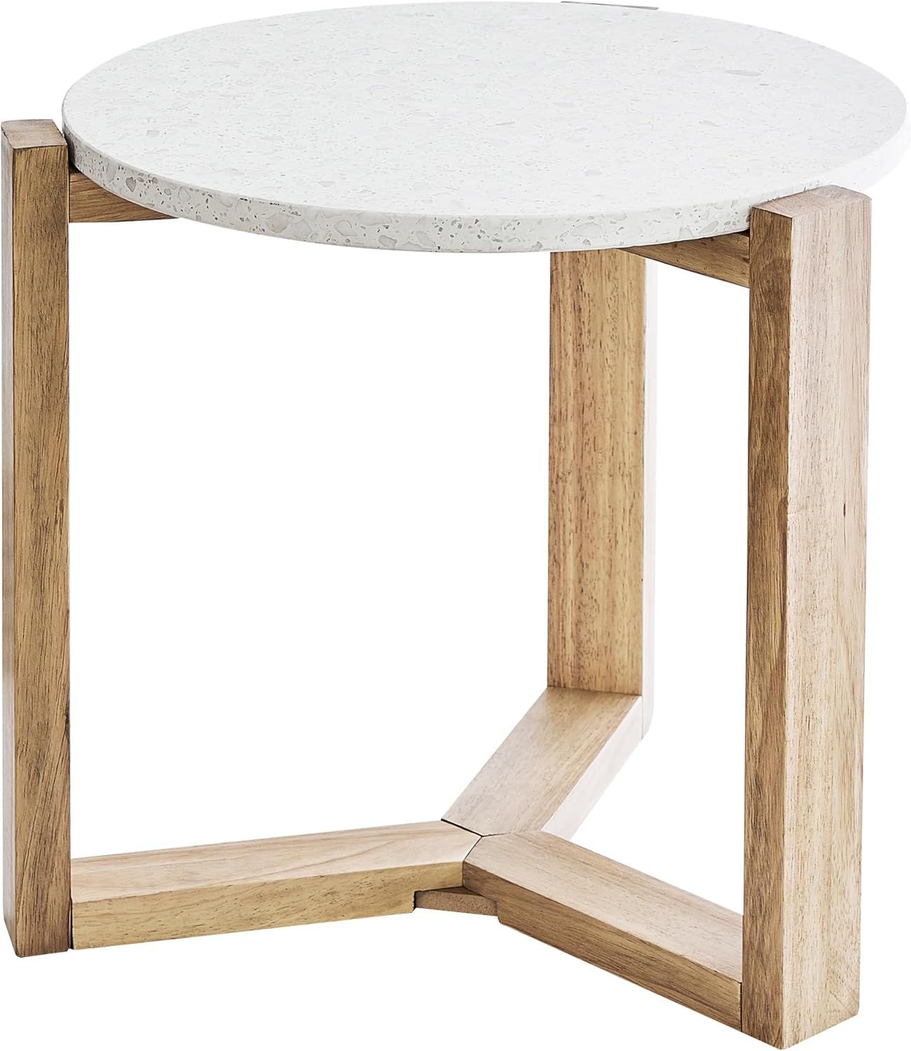 With its seamless modern circular design in on-trend terrazzo, the Cooper & Co. Sass Terrazzo Side Table will elevate any coastal, contemporary or modern interior. The terrazzo tabletop is anchored down by a solid oak frame, making it stable on hard and soft surfaces. What's more, with a diameter of 48.5cm, the Sass table is perfect for displaying books, magazines, knick knacks, and drink ware. Features: The on-trend material of the moment, terrazzo is a composite stone crafted from chips of aggregates in including marble and granite to create unique patterns, colours, and textures. This stylish side table features a unique speckled design that instantly elevates any lounge room and makes for an eye-catching and one-of-a-kind addition to the home. Part side table, part stool, part plant stand, apart from the coffee table, the Sass can do it all – making it versatile, practical, and stylish addition to any space. Carefully crafted, this sturdy side table is bound to stand the test of time in both style and durability as it was made to withstand everyday use to provide you with a place to rest your mug, remote or magazines for years to come. Specifications: Dimensions: 47x48.5x48.5 cm Colour: Multi Material: Terrazzo; Oak. Shape: Round. Simple assembly required. Usage: Home. Package Content: 1x Terrazzo side table.